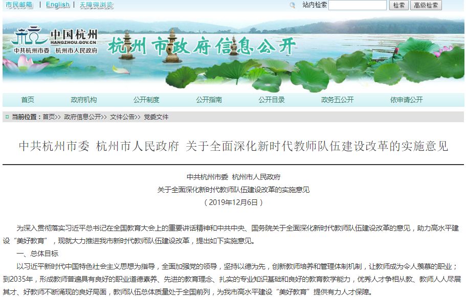 1月17日,杭州市政府新闻办公室、市教育局联合召开新闻发布会,发布市委、市政府《关于全面深化新时代教师队伍建设改革的实施意见》(下称《实施意见》),并做政策解读。