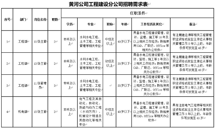 3.请应聘人员及时关注黄河公司(www.hhsd.com.cn)网站、招聘微信公众平台信息(hhsdzhaopin),公司将统一发布面试、录用人员名单,不再另行通知。